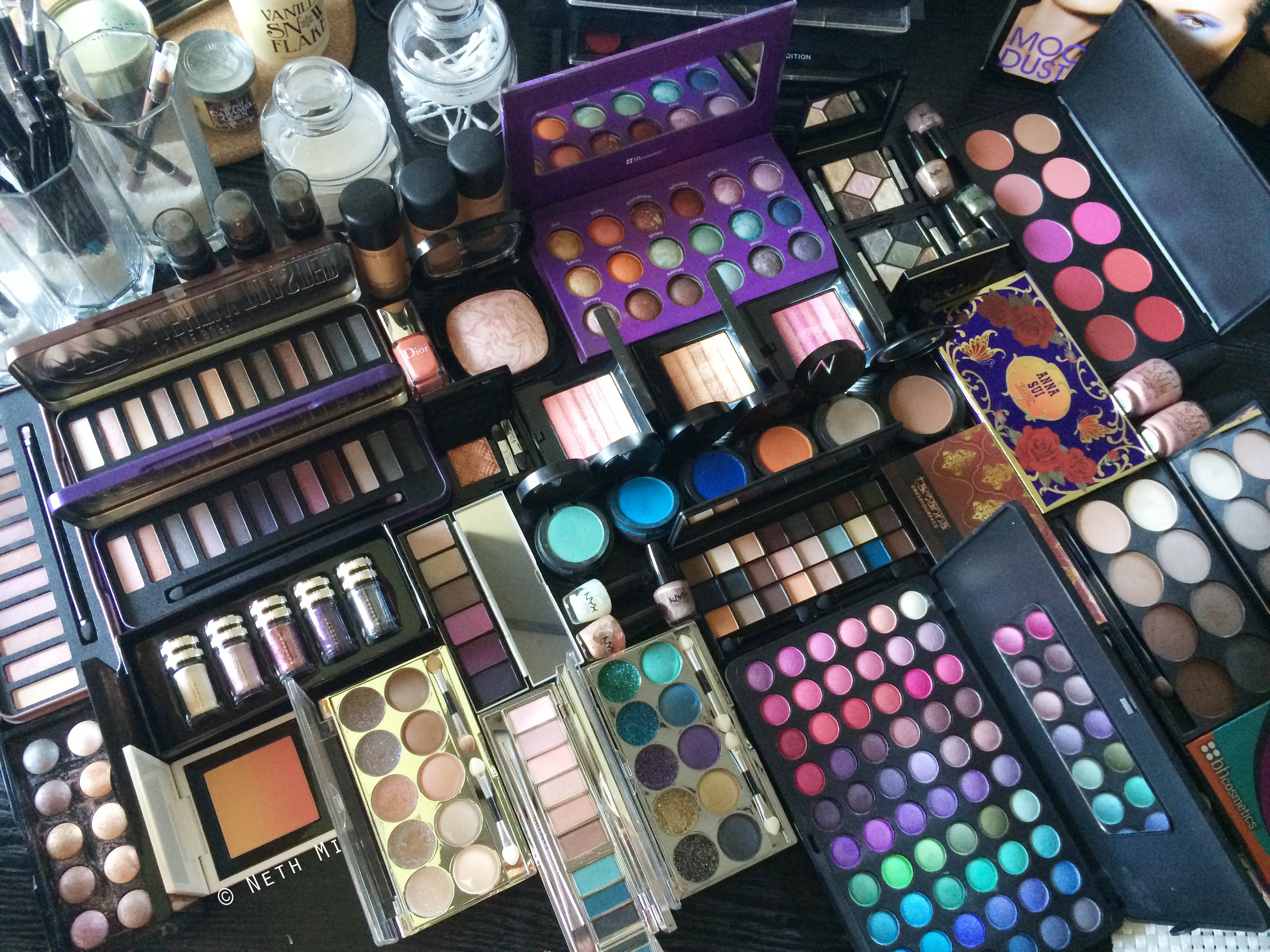 And trust me, there was a serious amount of products that could not fit in to this picture… (For example, we couldn’t include any lip products here (except for the Anna Sui lip palette which stays closed in this pic))