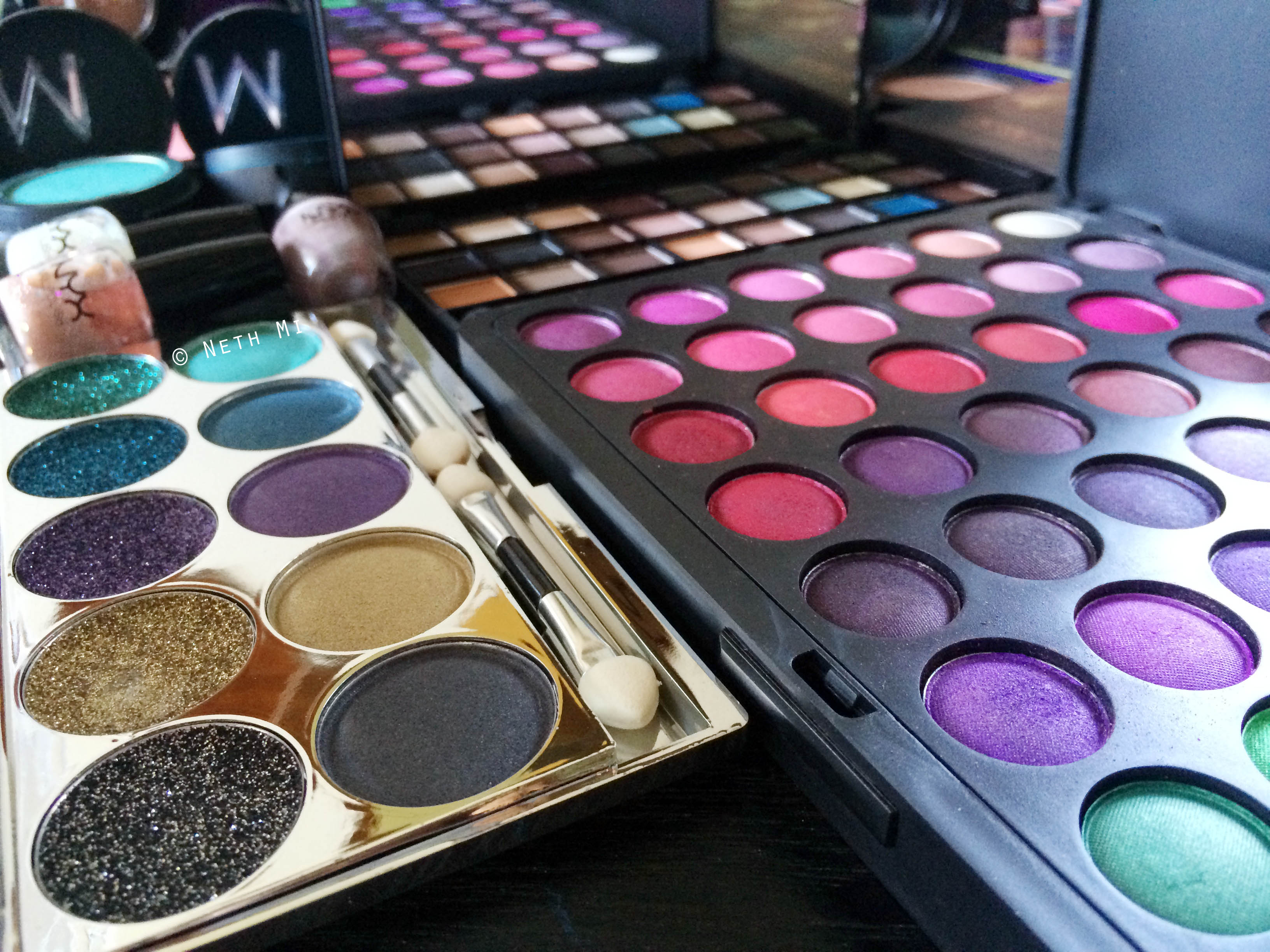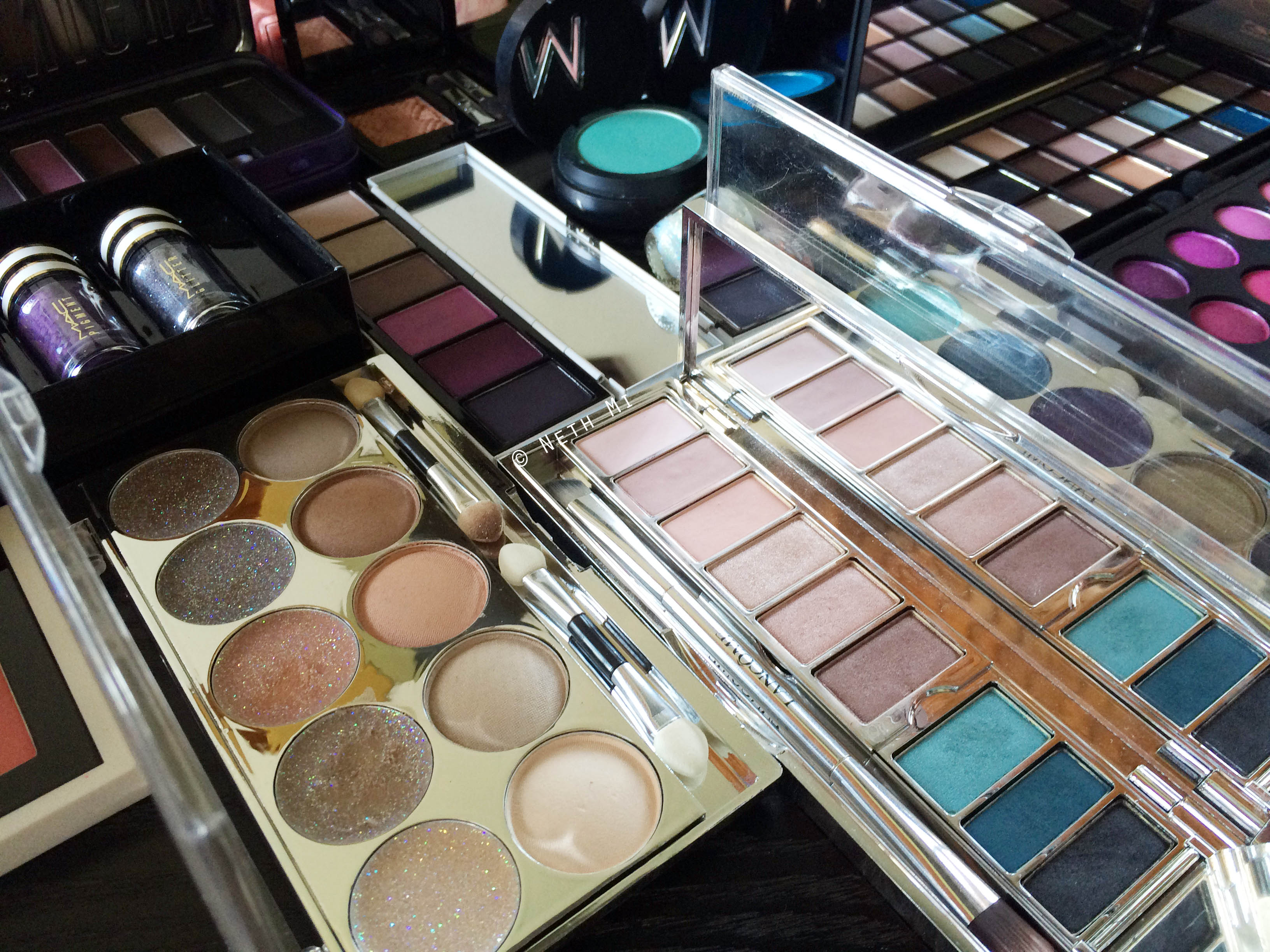 That BH Cosmetics Galaxy Chic palette is to die for!!! Its pigmentation was out of the world & ahhhhh those Bobbi Brown Shimmer palettes! I loved her wide collection of Makeup Store eyeshadows too… All the products in this pic swatched BEAUTIFULLY!! (The worst performer was MAC Toledo Violetwink palette with the poorest pigmentation- and then our conversation turned towards MAC)
