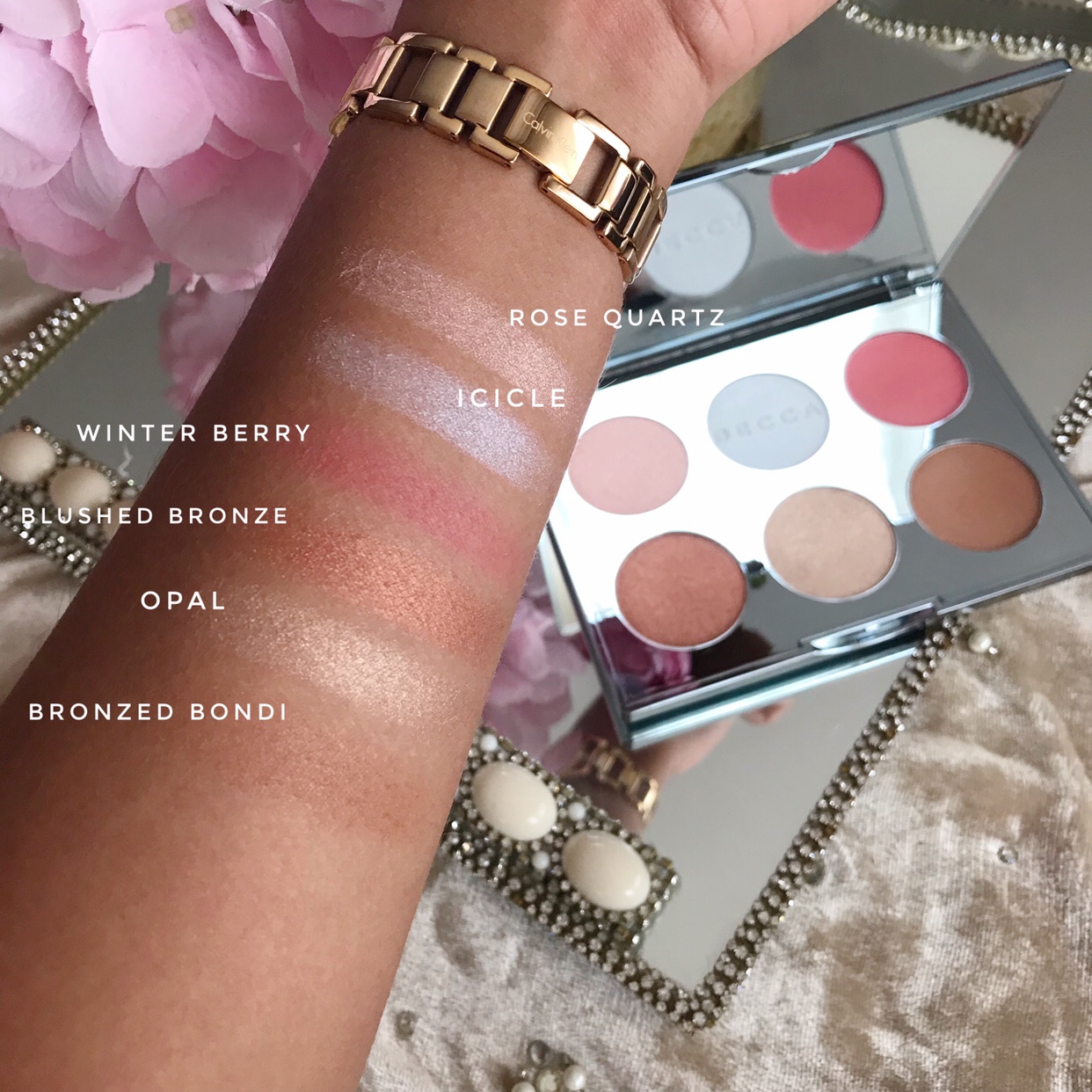 - Icicle: Limited to this palette, an icy highlighter with a hint of blue. I tried this on lightly on the high points of my cheeks and it’s wearable even on medium/tan skin when applied carefully.