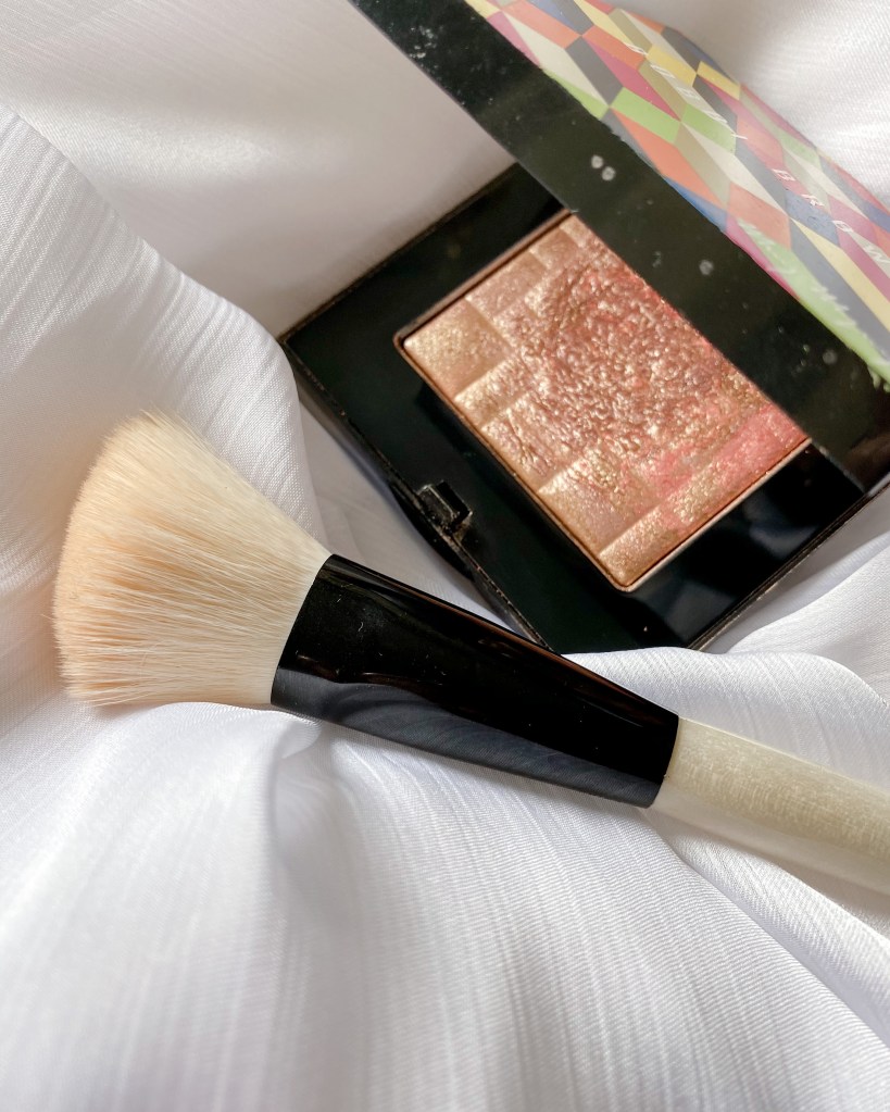 I’ve also become a huge fan of blush over the past year. I love this cream blush “Pot Rouge” from Bobbi Brown, and i use the shade Powder Pink. A little bit goes a long way, and you can use this on your lips too. Perfect to keep in your handbag for touchups! To use as a blush, I take a small amount with my fingertip onto the back of my hand, then I use the Bobbi Brown Blush Brush to apply it on my cheeks. I use whatever’s left on the back of my hand on my lips with my fingertips as a soft hint of colour.