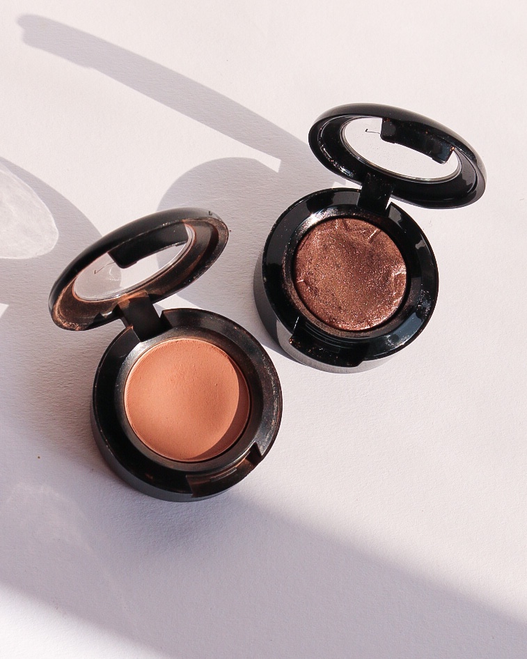 I feel bad not to include anything from MAC! So I chose two eyeshadows that had been idling around for a while. The matte shade is “Soft Brown” and the shimmer is a limited edition from 2019, “Starry Starry Night”. Both are a bit old, but still not expired. I find that powder eyeshadow shelf-life can be extended more than other products.